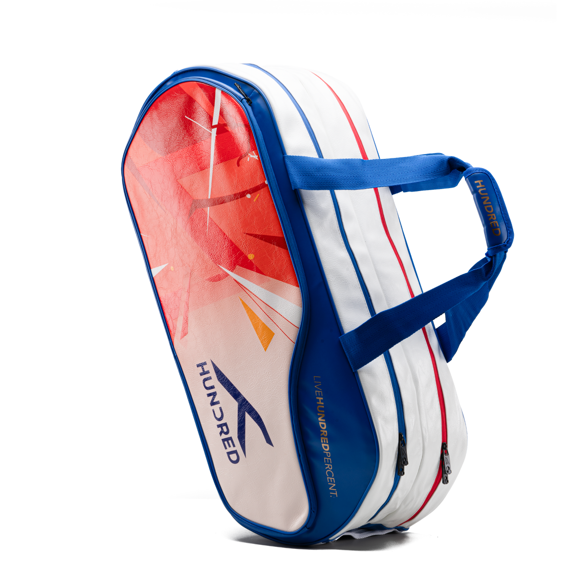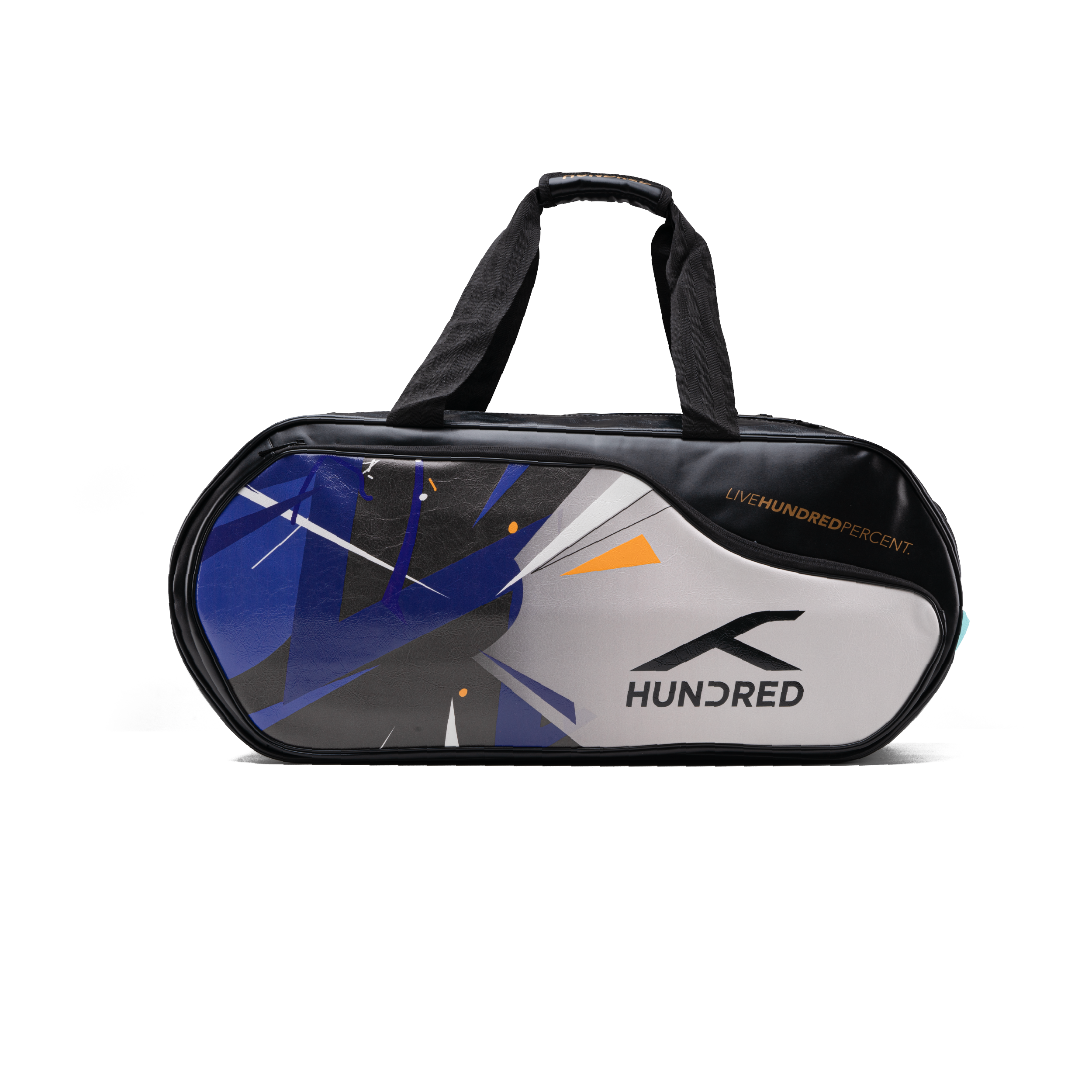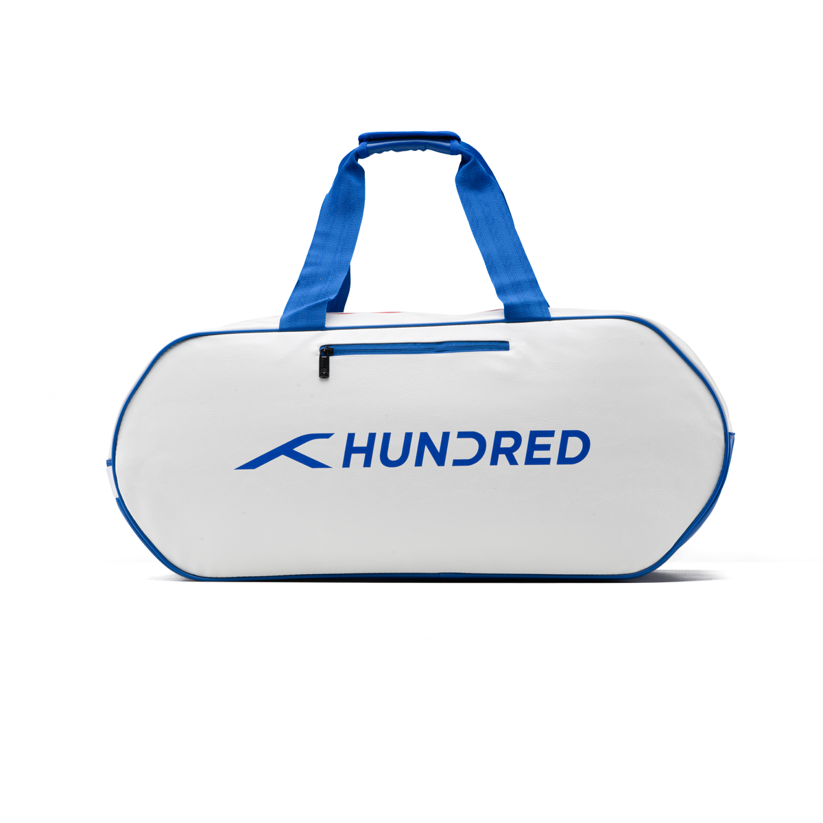 The Hundred Trailblazer Kit Bag offers premium storage with a sleek, modern design. Featuring three spacious compartments lined with soft, high-quality polyester, it keeps your rackets and gear protected at all times. The bag includes a separate shoe bag for added convenience. A practical side pocket provides extra space, making this bag a reliable companion for training sessions and tournaments.