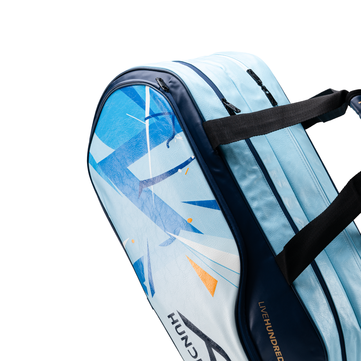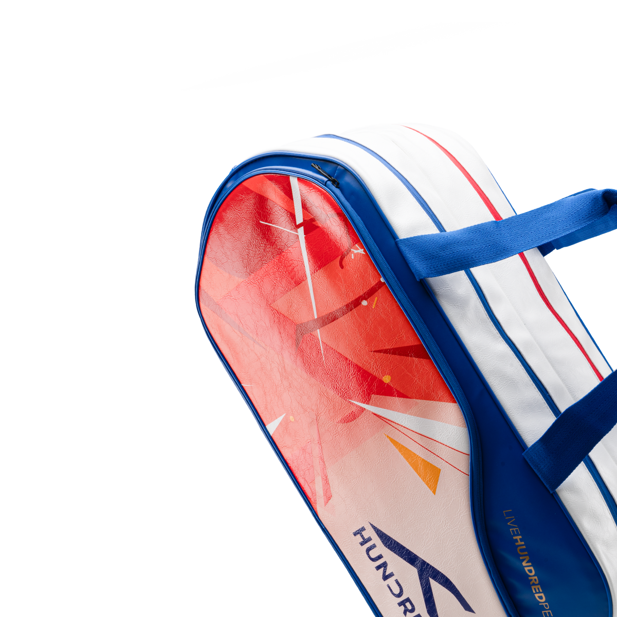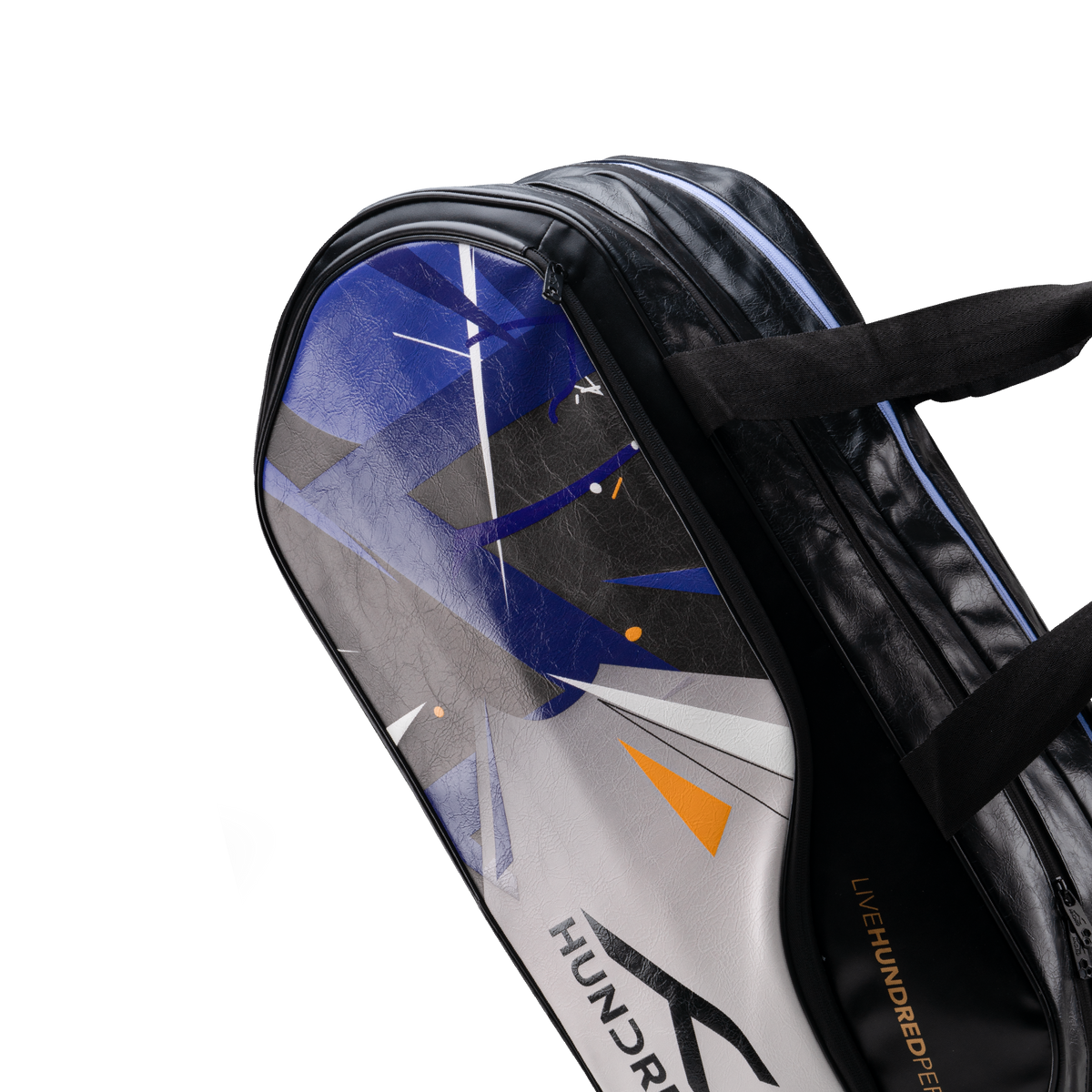 The Hundred Trailblazer Kit Bag offers premium storage with a sleek, modern design. Featuring three spacious compartments lined with soft, high-quality polyester, it keeps your rackets and gear protected at all times. The bag includes a separate shoe bag for added convenience. A practical side pocket provides extra space, making this bag a reliable companion for training sessions and tournaments.
