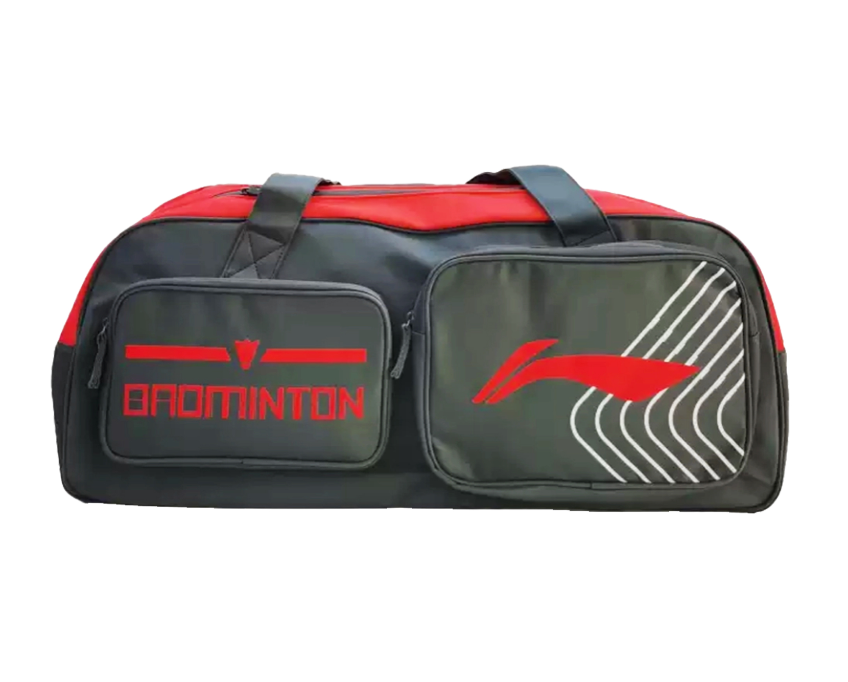 Li-Ning 6 Racket recreational Badminton Bag. Made from premium polyester with vinyl appointments. Grey with Red accents. Foam insulated sides.