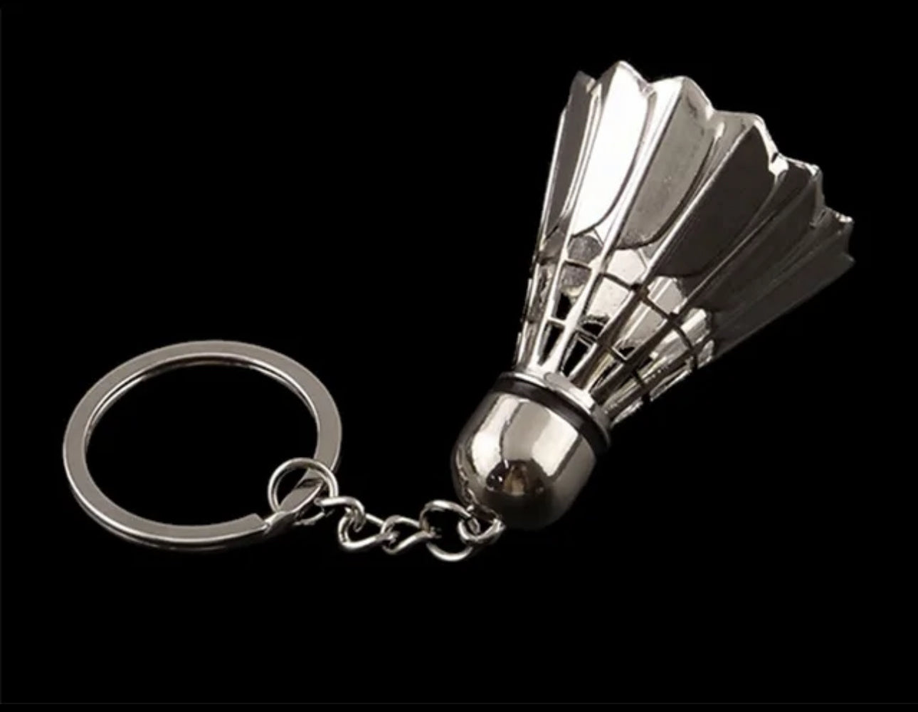 Badminton Shuttlecock Key Ring - Metal/Silver